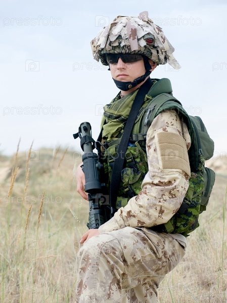 Солдат в защитной форме с оружием