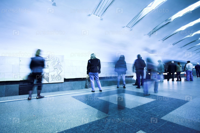 Толпа ожидает поезда на платформе в метро