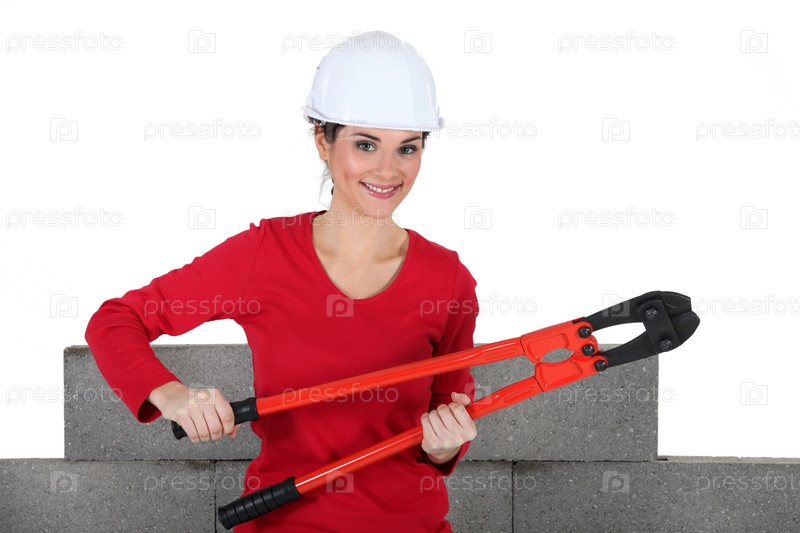 Женщина держит большие плоскогубцы