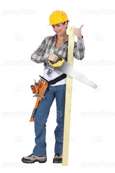 Женщина-плотник показывает большой палец