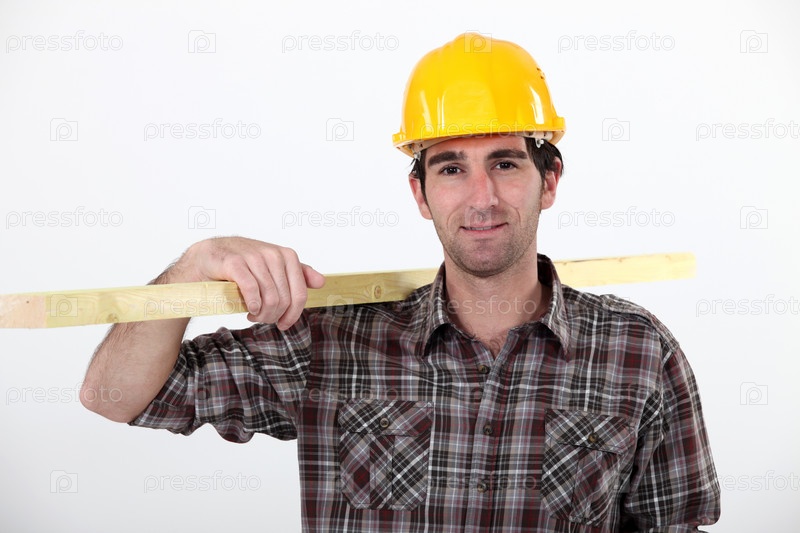 Плотник несет доску