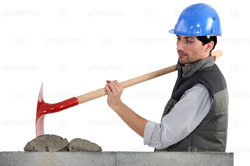 Рабочий с лопатой и цементом