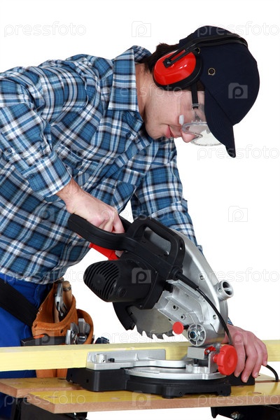 Мужчина использует торцовочную пилу