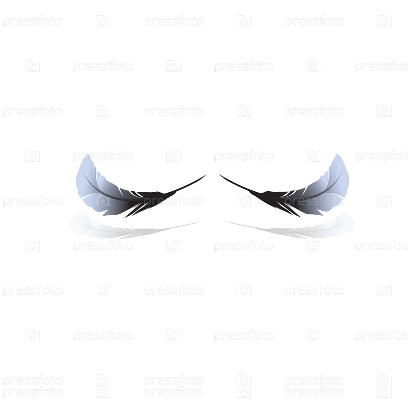 Два парящих пера на белом фоне, вектор