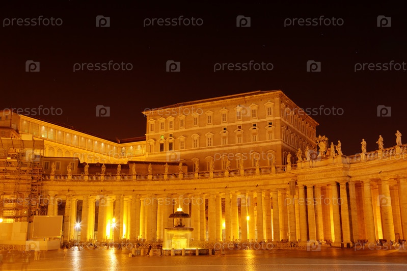 Ночной вид Колоннады Собора Святого Петра. Ватикан. Рим, Италия
