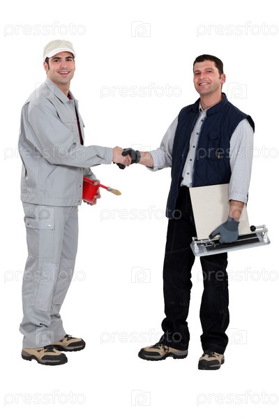 Рабочие пожимают друг другу руки