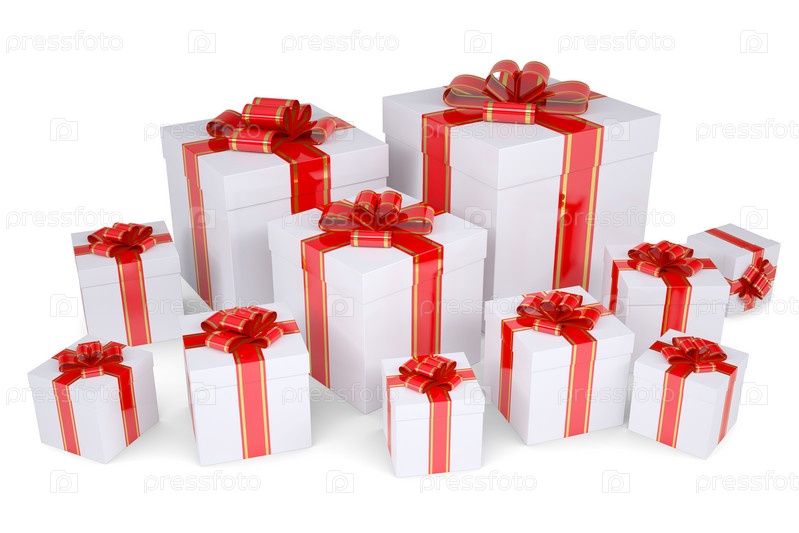 Подарки, украшенные красными лентами