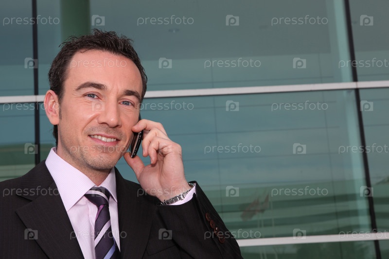 Уверенный бизнесмен говорит по телефону