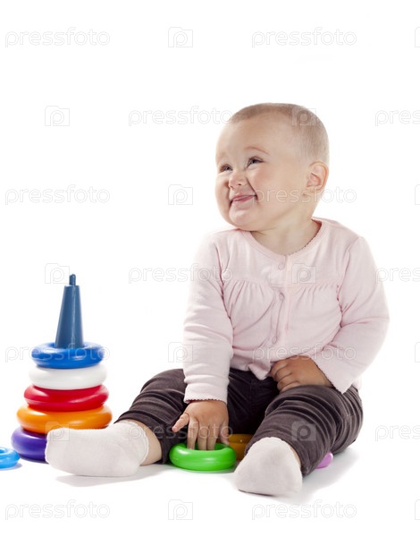 Девочка играет с пирамидой