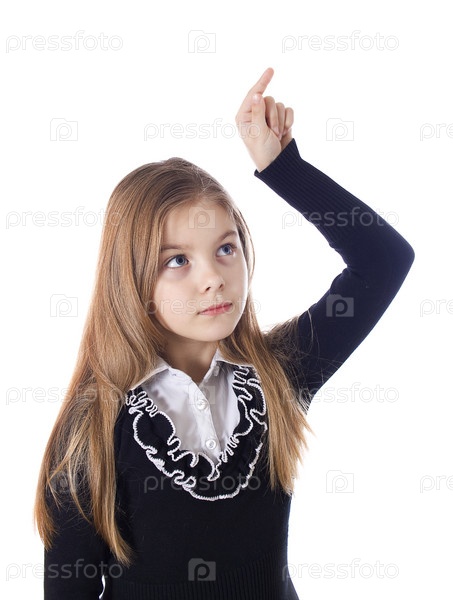 Белокурая девочка показывает пальцем вверх