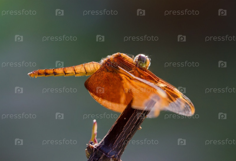 Красная стрекоза сидит на ветке