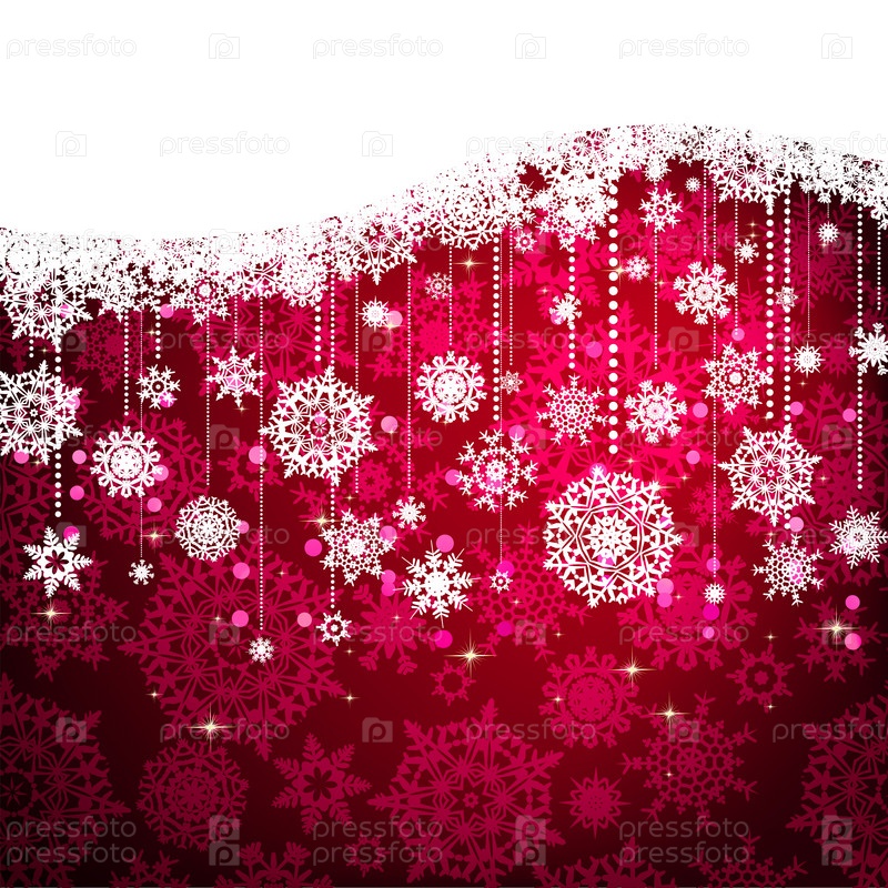 Красная открытка с рождественскими снежинками. EPS 8