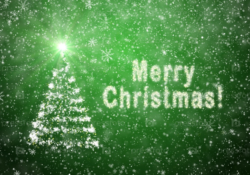 Рождественская елка с падающими снежинками и звездами