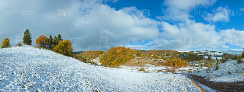 Панорама Карпатских гор с первым октябрьским снегом