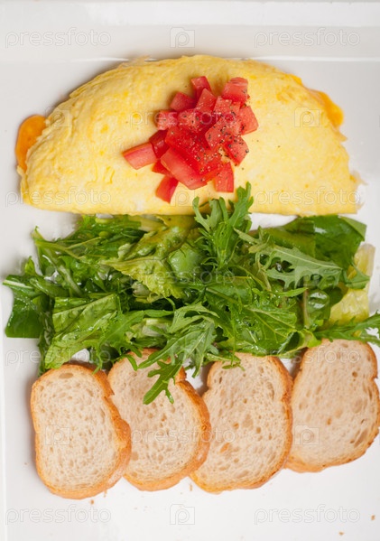 Сырный омлет с помидором и салатом