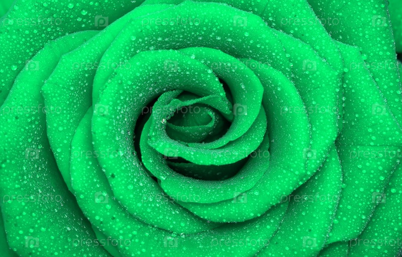 Капли росы на зеленой розе