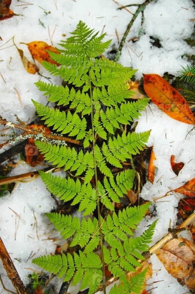Лист папоротника на снегу