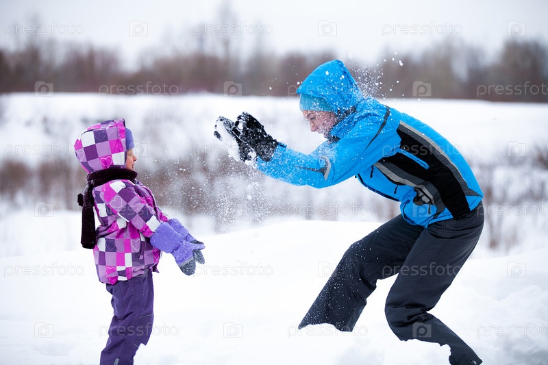 Мать с ребенком в снегу