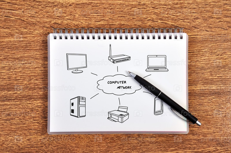 Блокнот с рисунком компьютерной сети