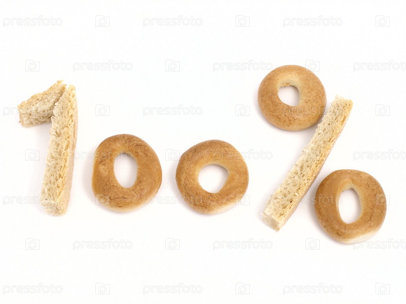 Надпись 100 процентов выложена из хлебобулочных изделий