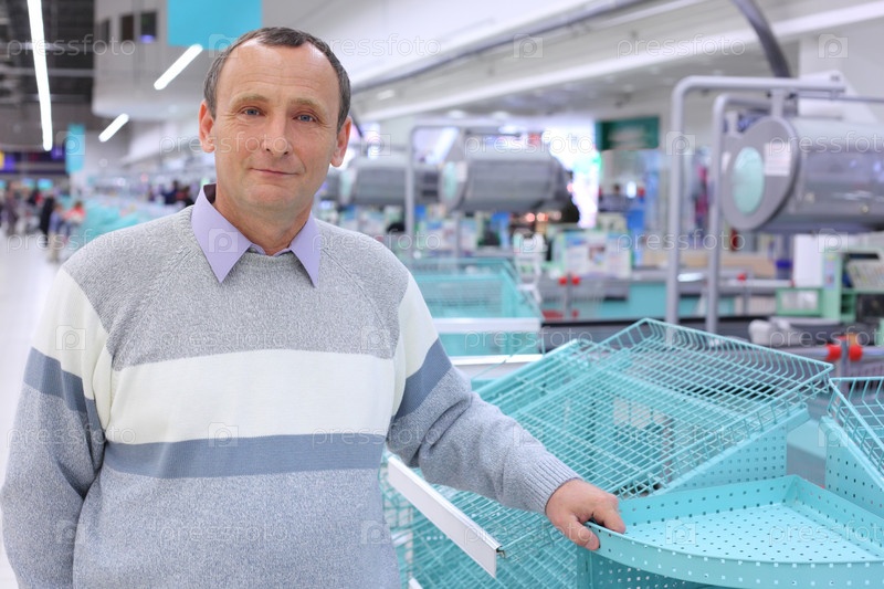Пожилой мужчина в магазине с пустыми полками
