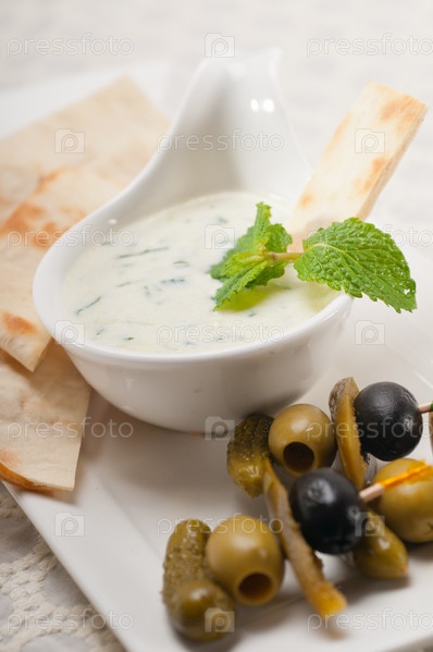Греческий йогурт цацики и хлеб пита