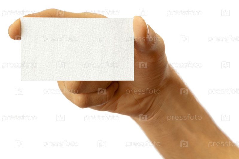 Рука держит визитную карточку на белом фоне