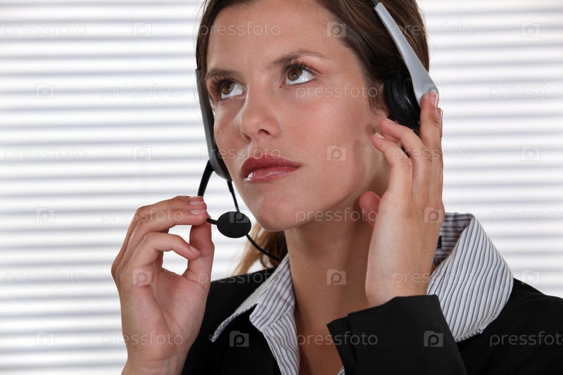 Темнокожая сотрудница колл-центра ремонтирует гарнитуру