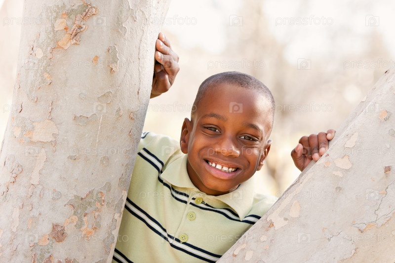 Афро-американский мальчик играет в парке