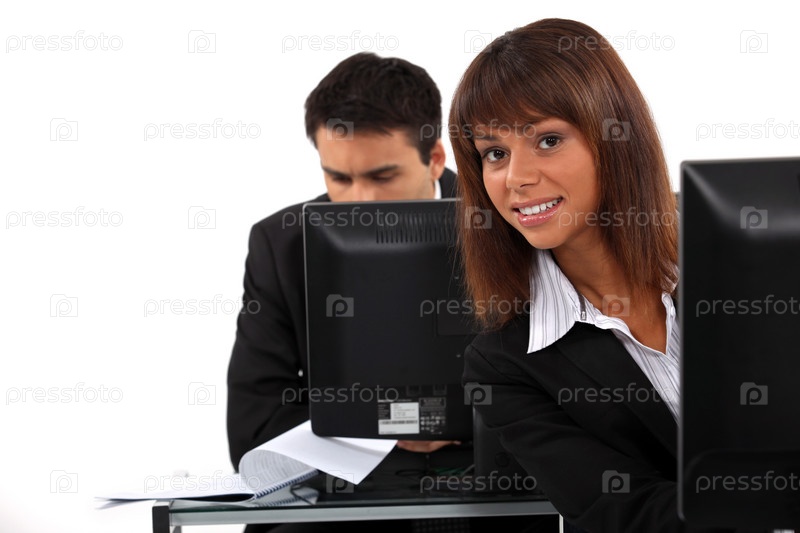 Офисные работники сидя за компьютерами