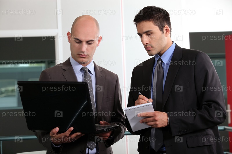 Молодые бизнесмены с ноутбуком