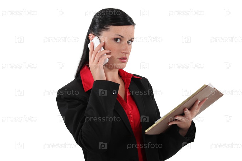 Бизнес-леди говорит по телефону с ежедневником в руках