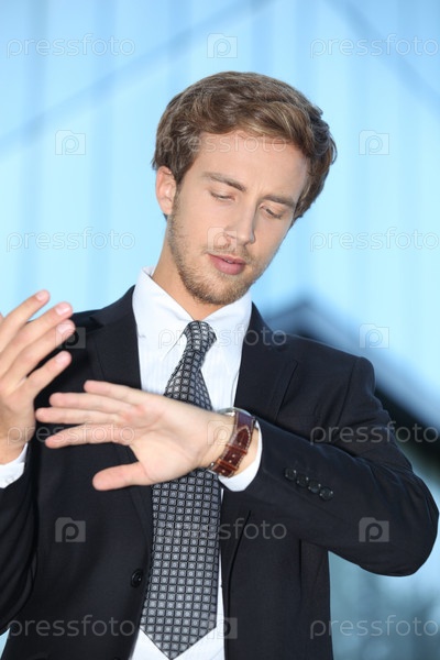 Бизнесмен смотрит на часы