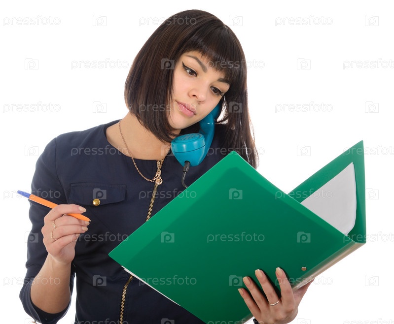 Девушка с ручкой и зеленой папкой