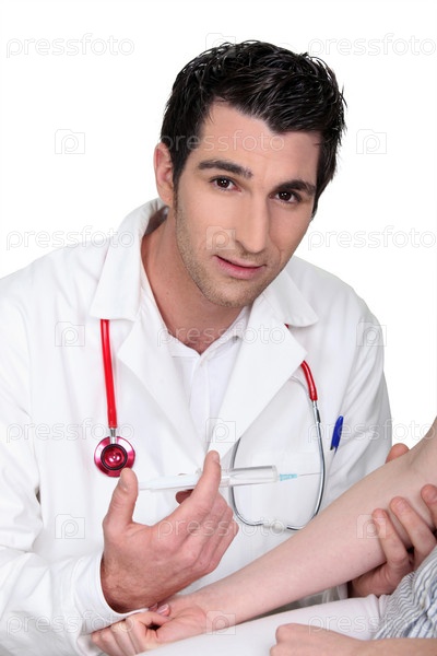 Молодой врач делает инъекцию пациенту