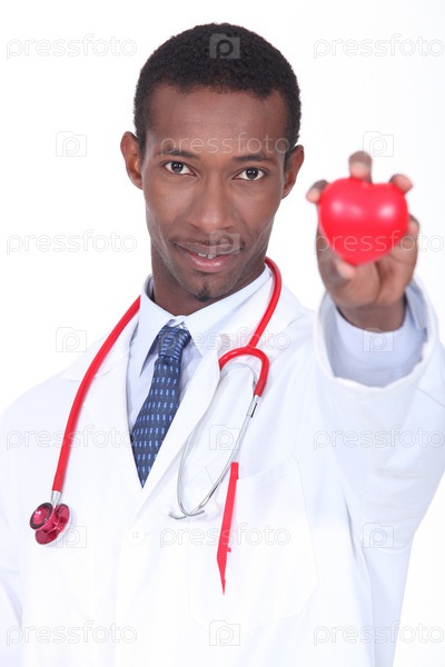 Врач с пластиковым сердцем в руке