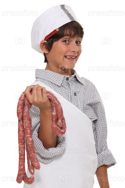 Маленький мальчик, одетый как мясник