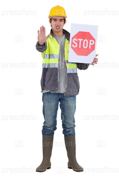 Рабочий со знаком стоп