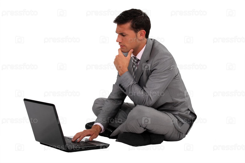 Бизнесмен сидит на полу