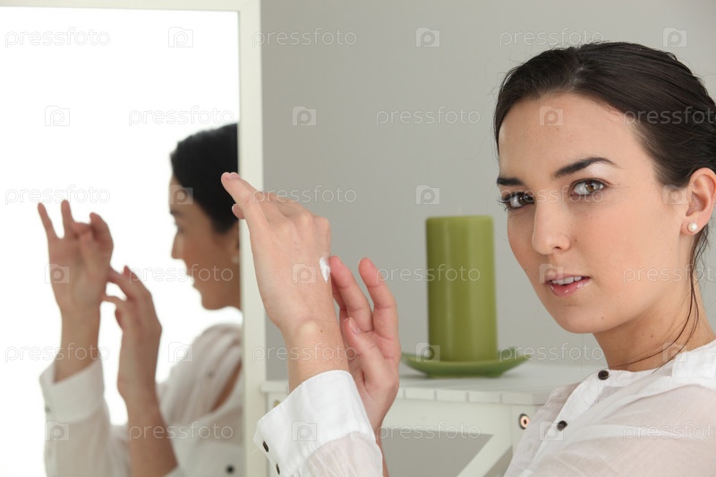 Женщина увлажняет руки