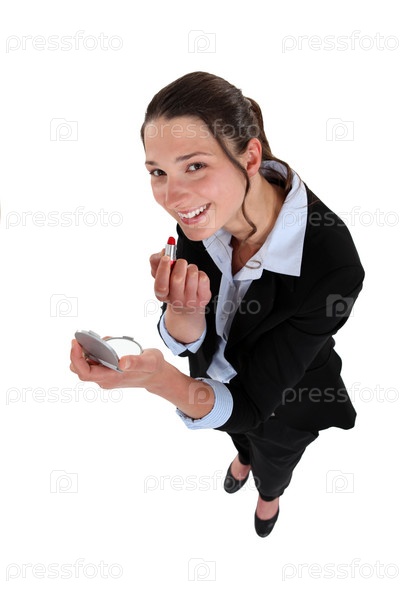 Деловая женщина наносит помаду