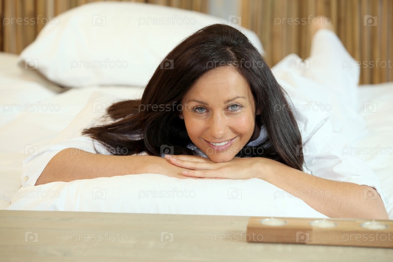 Брюнетка расслабляется в постели