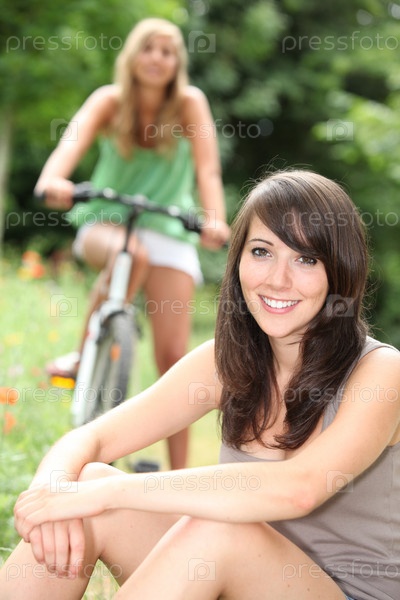 Две молодые женщины в сельской местности