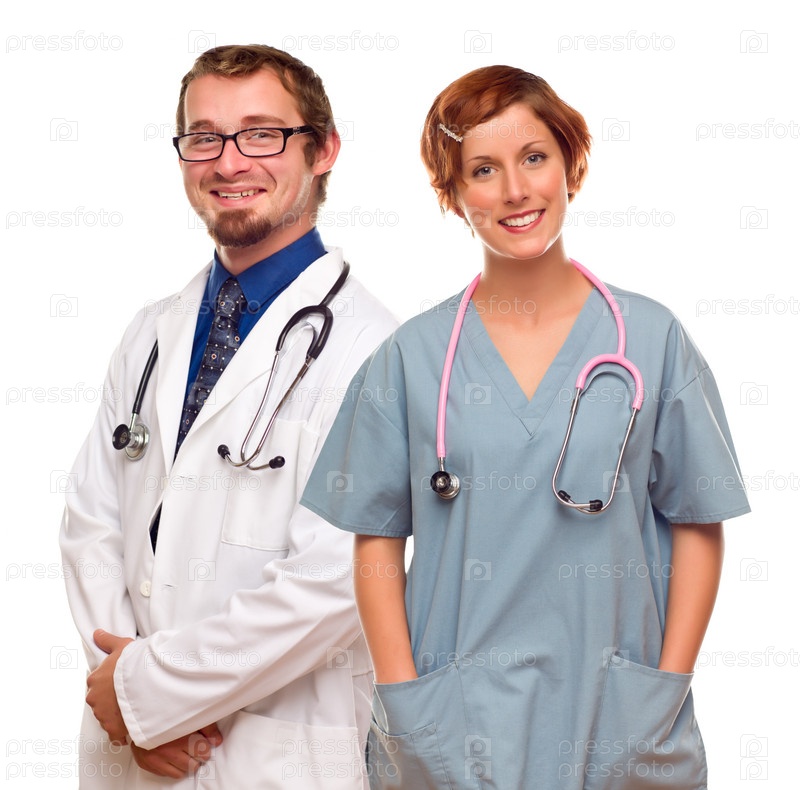 Врачи или медицинские сестры на белом фоне