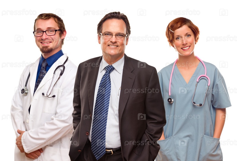 Улыбающийся бизнесмен, врач и медсестра