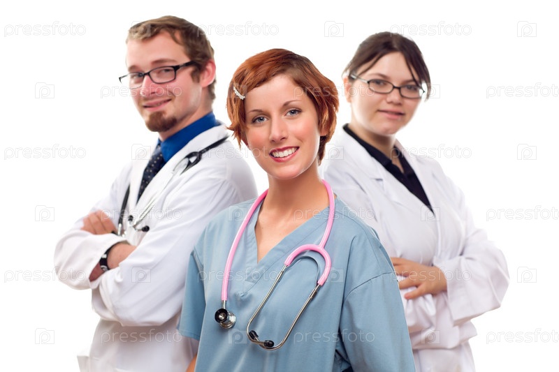 Врачи или медицинские сестры на белом фоне