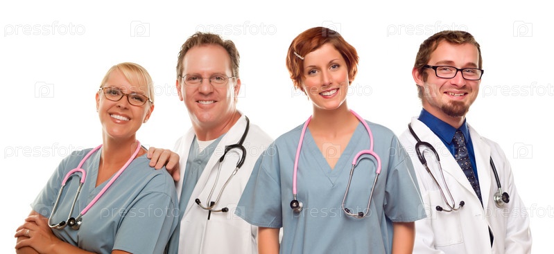 Врачи или медицинские сестры на белом фоне