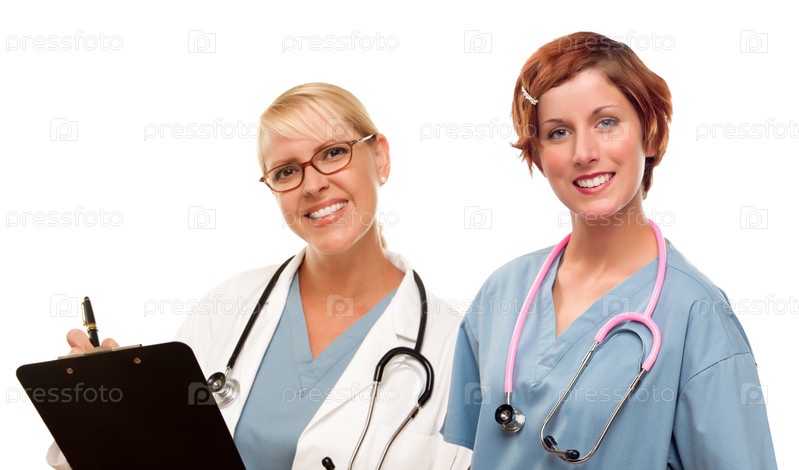 Врачи или медицинские сестры на белом фоне