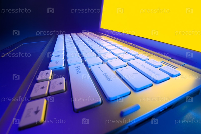 Современный ноутбук с близкого расстояния со световым эффектом