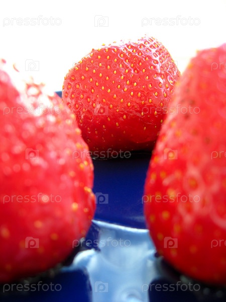 Три спелой клубники на тарелке